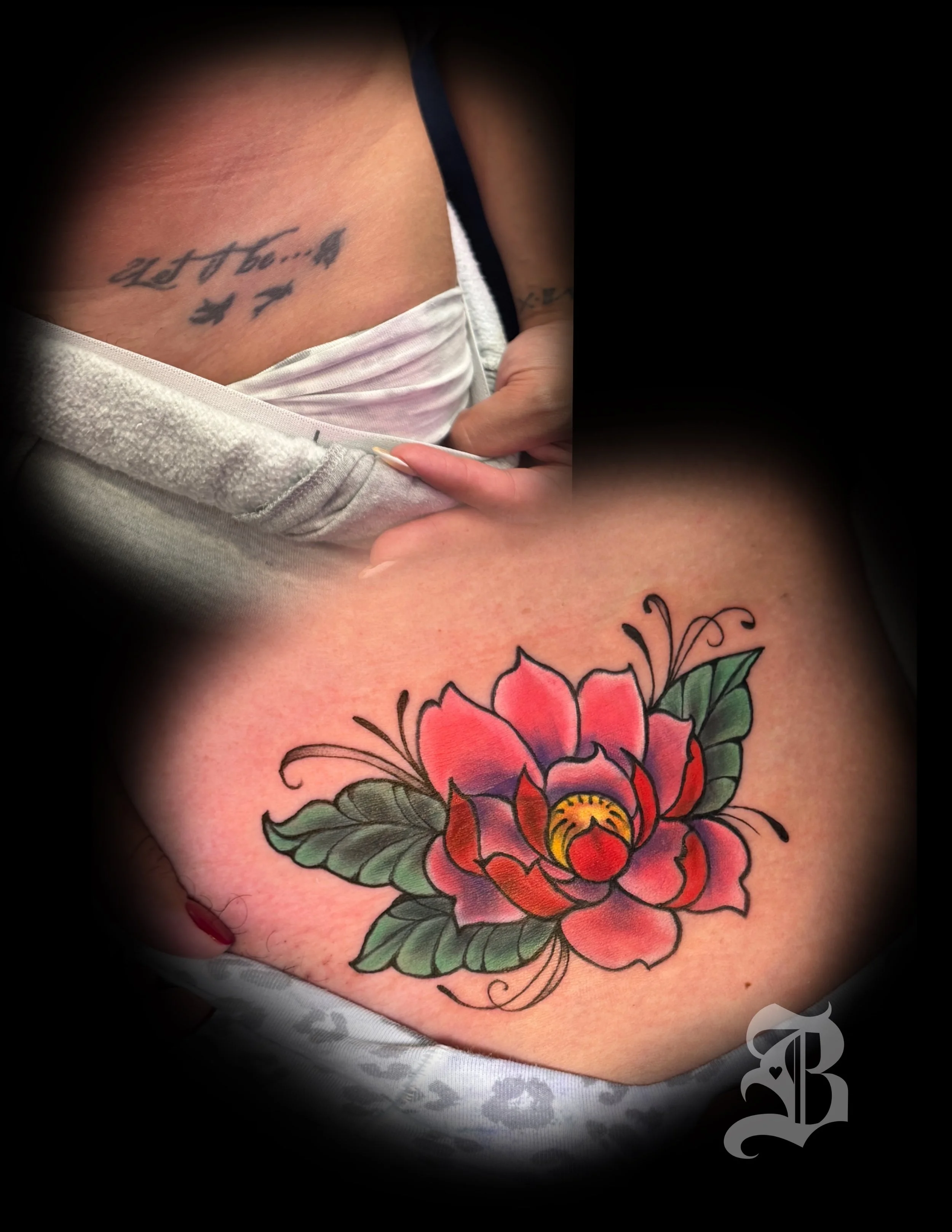 This was a fun hip tattoo! My client was very adamant that she just wanted her existing tattoo covered up ASAP! She said any kind of flower would do and just asked it’d be colorful.
